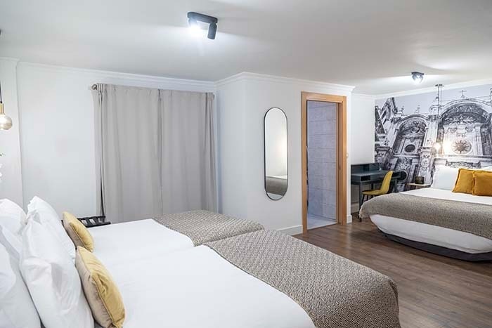 The Hotel Presidente's quadruple rooms are comfortable and feature four 1.05 m beds, recently and elegantly decorated. They feature a full bathroom with a hairdryer, shower or bathtub, flat-screen TV, air conditioning, heating and air conditioning, a work area, Wi-Fi, and a telephone.