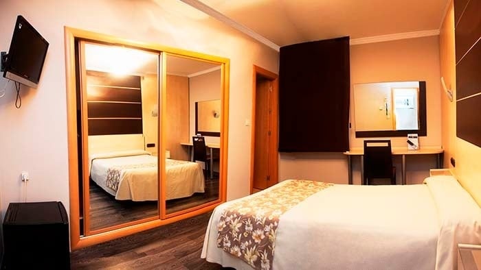 Rooms with simple and cozy decor, some with double beds and others with twin beds, have a safe, 40" flat-screen TV, telephone, air conditioning, alarm clock, desk, fully equipped bathroom with bathtub, bidet, hairdryer, parquet floors and others with marble, and wardrobes.